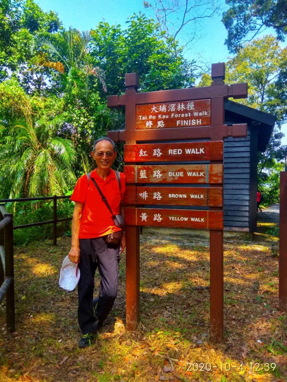 十月金秋的第一個星期日(2020年10月4日)陽光燦爛,港澳台灣同鄉會登山隊,前往大埔松子園行走「大埔滘林徑」。今次是同鄉會登山隊因香港疫情被迫停止行山9個月後的首次活動。張佐民會長親自出馬和理事Jennifer一齊帶隊,事先香港台灣婦女協會戴綺薇會長已與張佐民會長協商好,决定兩會一起出遊,因此登山隊今次是美女們的天下,有38人參加此行。參加此行的還有台灣婦女協會前會長歐陽珍女士及戴綺薇會長的先生吳恩伯博士。